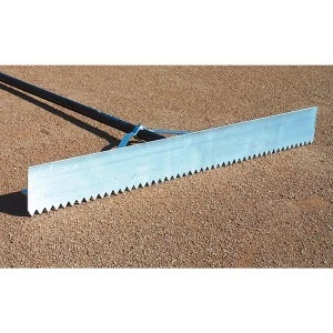 - Pointed scarifying teeth on one side with leveling blade on the other side