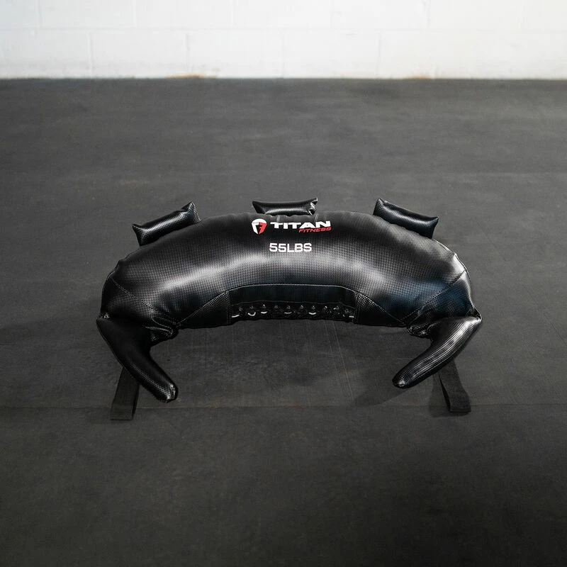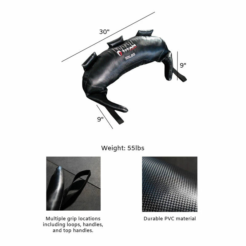 Add a whole new dynamic to your workout routine with the multi-faceted Functional Training Swing Bags by Titan Fitness®. These extremely handy training bags can be swung, carried, lifted, tossed, and more! Featuring two main straps for simpler exercises, or take your grip strength to the next level with the challenging top handles. The swing bags are 30-inches in length, a great size to fit athletes both large and small. They are offered in a variety of weights from 15 to 60-pounds to suit your training needs. For those looking to shake up on their aerobic and cardio routine, the smaller bags may be the best fit. More serious competitors, who are looking to make serious strength gains and maximize their weightlifting, may lean towards the heavier-weight swing bags. The handles on either side measure about 9-inches in length – which is also the length of the color straps.