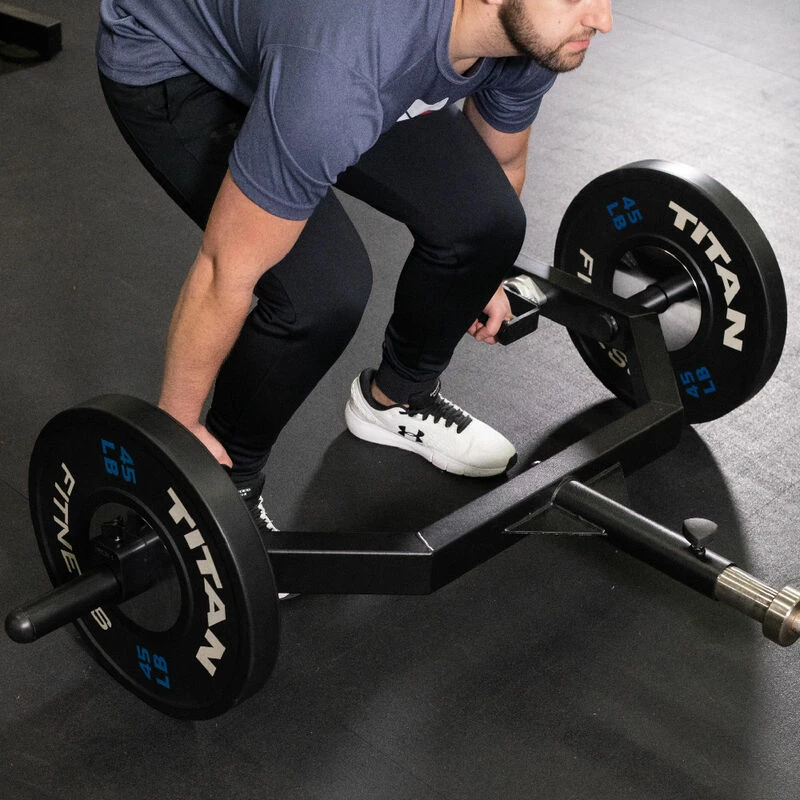 Increase your training with the innovative walk-through Clean N Jerk Landmine Attachment that will allow for a wide range of movements such as lunges and carries. This high-quality landmine trap bar attachment easily attaches to any Olympic bar with a painless slide-over design. It allows quick installation and prevents wear and scratching on your barbell. The threaded stop pin will keep the barbell in place as you train and works great for any landmine training. The attachment is made from 2 x 2.75-inch, 11-gauge steel tubing featuring two weight post sleeves and knurled handles that rotate 360-degrees. Take your workout to the next level by performing deadlifts to overhead presses without changing your grip as the handles rotate with you as you lift.
