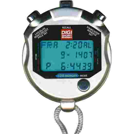 This stopwatch has a solid metal casing. With 100 memory spaces for laps and split times as well as an alarm, timer and pacer function.