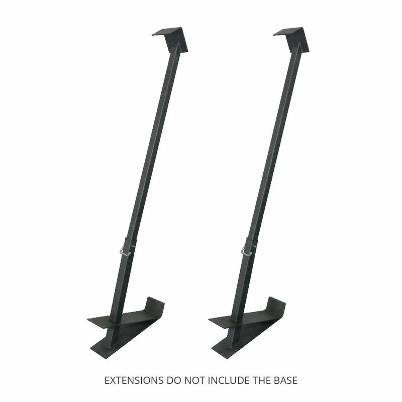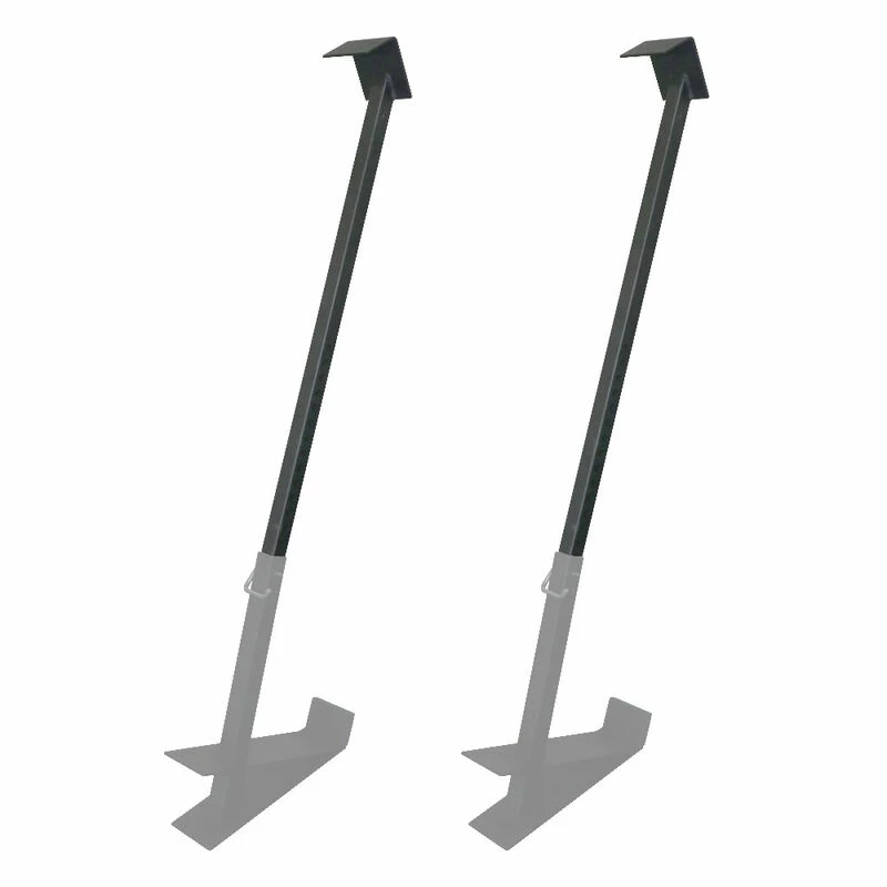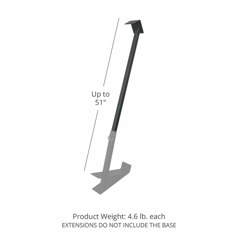 Eliminate the need for a spotter and focus on the eccentric phase of your lifts with these Eccentric Hooks. The Eccentric Hook Extensions extend up to 51″ versus the base model, which extends to 35″. Simply remove the short extension from the Eccentric Hooks and replace them with the expanded attachment. Then attach the hooks to the end of your barbell to front-load your first rep with extra weight on the “negative” portion of your lift, and let the hooks drop off, leaving you with just the weight on the bar for the remainder of your set. As you reach the bottom range of movement and the angled footplates touch the ground, the hooks will release from the barbell, enabling an explosive lift.