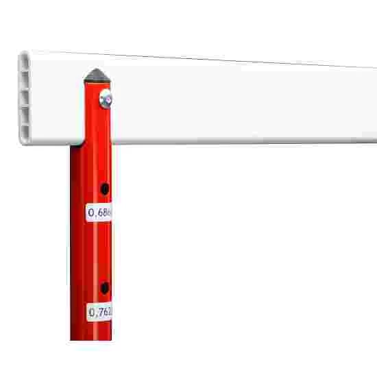 The Polanik training hurdle consists of a steel/aluminium construction and is therefore very sturdy and robust. The bent ground frame includes integrated counterbalances for tip momentum. The stand is telescopic with a spring-action mechanism for 5 to 7 levels of height adjustment. Thanks to their collapsible construction the hurdles are a piece of equipment that is easy to transport and store.