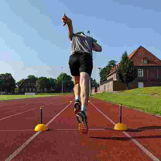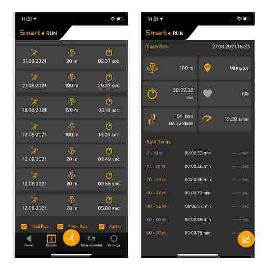 Unique magnetic timing technology for professional performance diagnostics at any location. With free app to view livestream timing on your smartphone. Great tool for short-, medium- and long-distance runs, hurdles and relays, but also for pole vault and long jump. This is how it works: put on the belt with the sensor electronics and run through the gates. These can be set up with a minimum distance of 5Â metres. The data recorded by the sensor can be viewed in real time on your smartphone or another online device. Use 2 gates for runs without split times and 4 gates for runs with split times. Packed dimensions (LxWxH): 43.7×37.9×13/16Â cm. Approx. 8/12Â kg.
