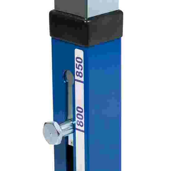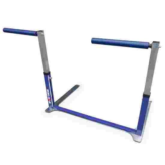 Versatile, for schools and clubs as well as rehabilitation and fitness. Soft, thanks to two-piece padded crossbars. High-quality and accurate telescopic push-button height adjustment. Made of steel, with weighted base. 2 variants – LxWxH: 107x70x50 mm, height adjustment: 50–85 cm, 11 kg; and LxWxH: 107x70x85 mm, height adjustment: 85–150 cm, 13.5 kg.
