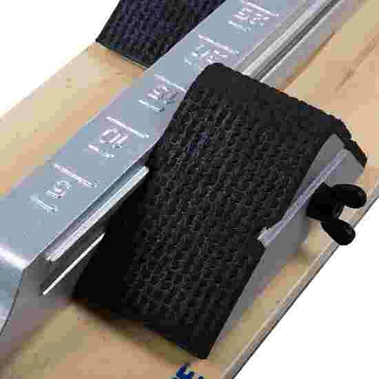 The Sport-Thieme indoor starting blocks are designed exclusively for indoor use. Made of wood and aluminium, they are built to last. The aluminium rail is mounted on a wooden board that measures 62×24 cm. For increased stability, the underside has been treated with a special, slip-resistant coating. The base slopes forward to prevent tripping. The starting blocks can effortlessly and quickly be adjusted, which makes indoor training much easier.