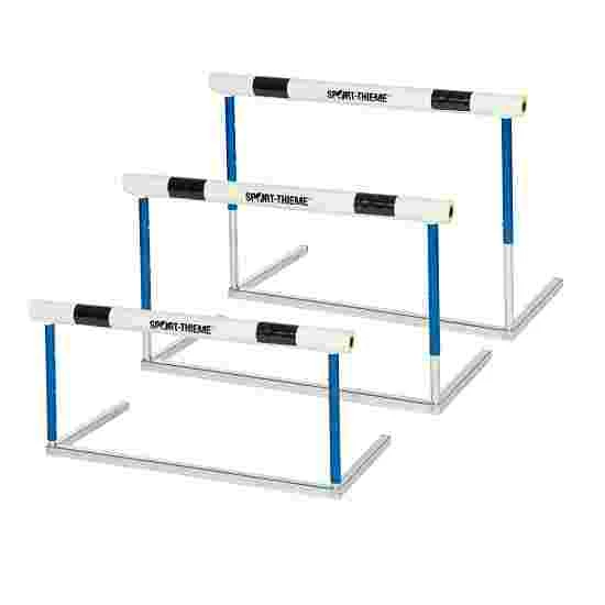 Hurdle for children’s athletics events. Easy height adjustment thanks to push-button system. Adjustable heights: 40, 50 and 60 cm. Padded crossbar for increased safety. Compact storage thanks to removable base. 40x80x60/50/40 cm. Approx. 4.4 kg. Silver, black, white and blue.