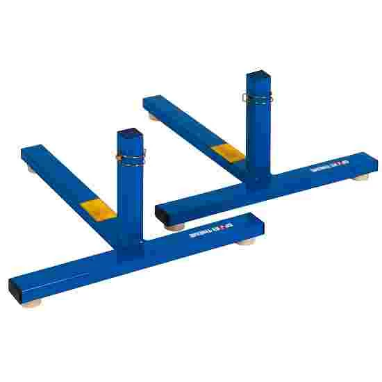 The Sport-Thieme T-base is made of steel and features non-slip rubber pads on the underside. Aluminium high jump posts can be easily inserted into the base and secured using the locking pin supplied. This allows you to raise the posts without having to move the T-base.