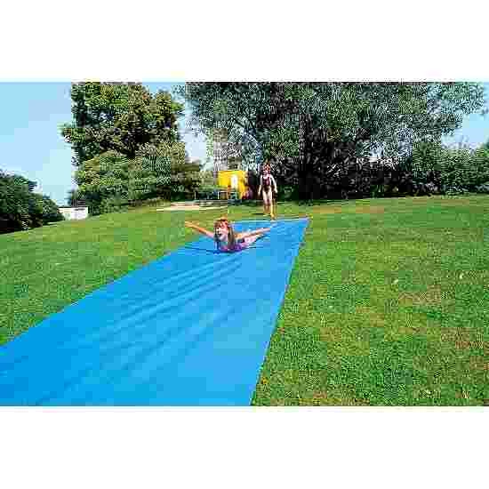 This slide allows you to have great fun diving on the grass. This slide really comes into its own when it is warm outside. Every child loves splashing around and will slide along this water slide with great enjoyment. It is made from tear-resistant, especially strong lorry tarpaulin material, is 1 mm thick and has a 1/2-inch sprinkler connection. 6 m long and 1.10 m wide. To get water from the hose you need a standard garden connector that fits the hose.