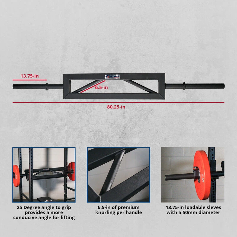Build your chest and back muscles while reducing strain on your shoulders with the Swiss Bar from Titan Fitness. The 25 degree angled to the grips of our Swiss Bar provide a much more conducive angle for lifting resulting in decrease strain on your shoulders. Each handle features 6.5-in of premium knurling for a secure grip while lifting.