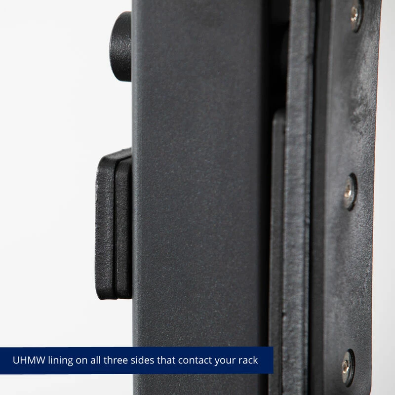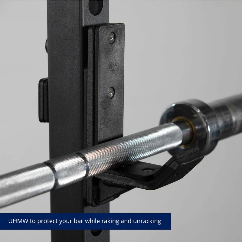 The T-2 Series J-Hooks are designed with a J-hook-style mounting system that allows you to install the hooks to your rack within seconds. Easily clip the mounting system into the uprights by inserting the pin and twisting the bars down. No hardware is required. The two 2-inch-wide hooks can hold up to 1,000-pounds and feature a durable plastic core on the backplate, lip, and frame, helping preserve your bar’s knurling and rack from being damaged. Elevate your workouts and overall safety with the T-2 Series J-Hooks!