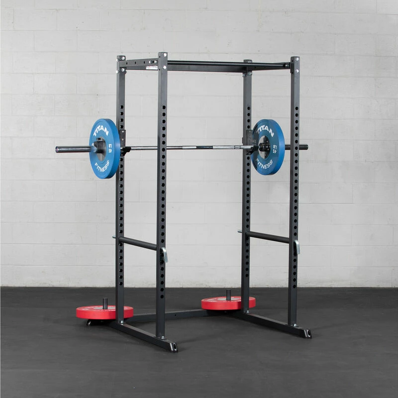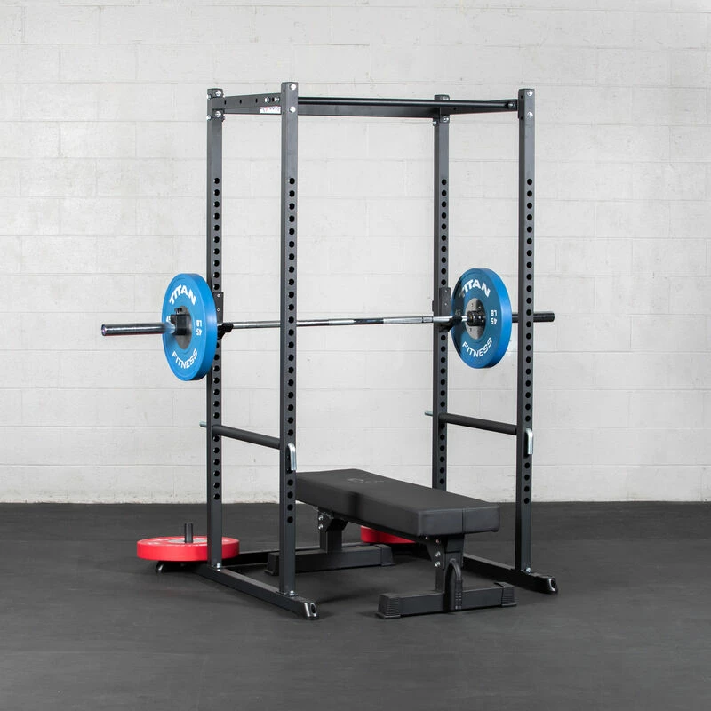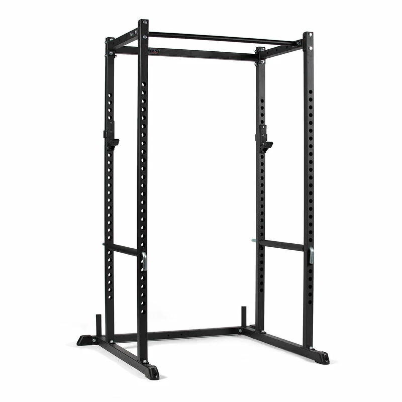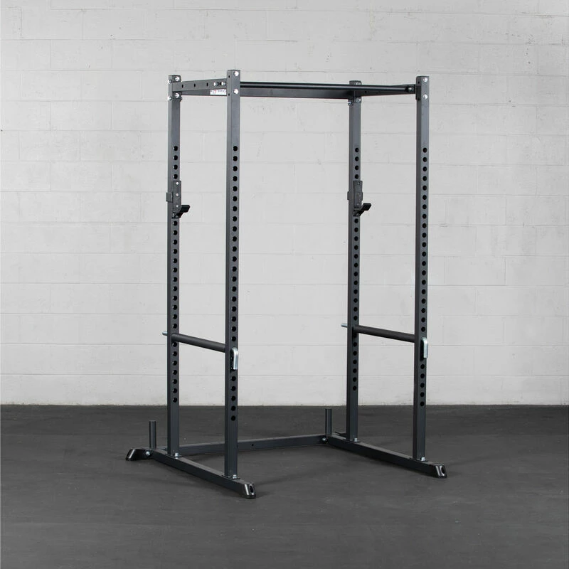 The T-2 Series Power Rack is offered in 71 and 83-inch models to fit your gym needs. Featuring heavy-duty 2 x 2-inch 12-gauge square steel uprights with laser-cut holes spaced 2-inches on center throughout the front and back of the uprights and side bracings, a bolt-together design, and a powder-coated black finish. Additionally, the power rack comes equipped with weight plate horns, pin/pipe safeties, reinforced J-Hooks, and a single pull-up bar. Take your workouts even further and add more variety by taking advantage of our power rack accessories, such as: Strap Safeties, Rack Mounted Lat Tower, and more.