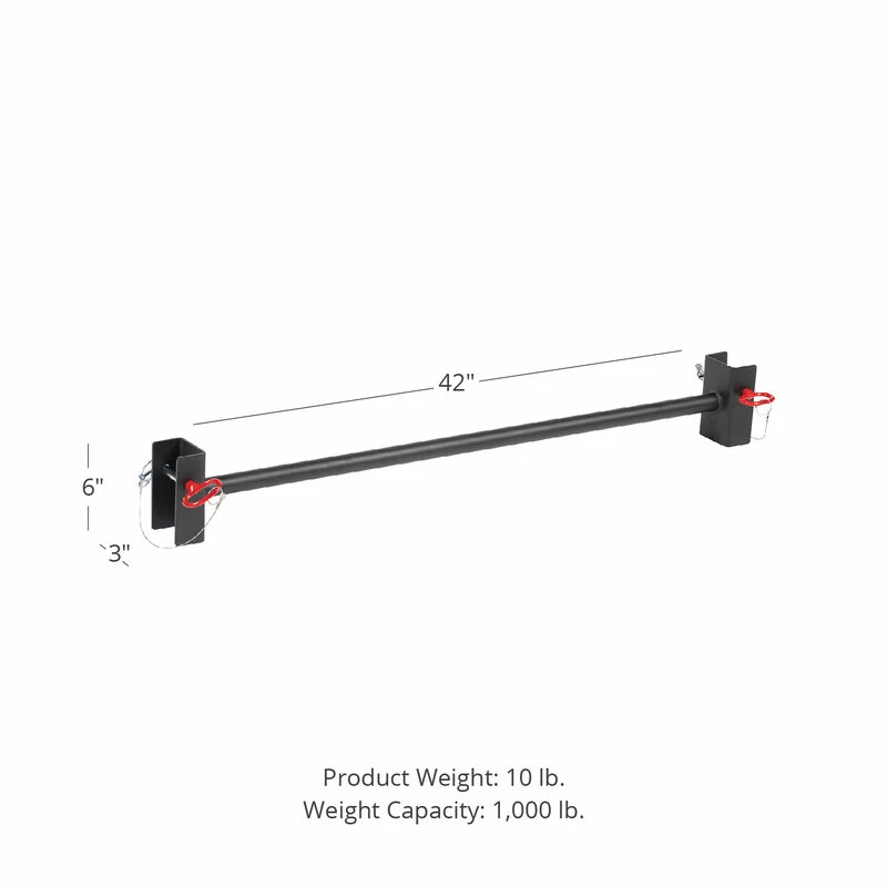 The T-3 Series Adjustable 42-inch Pull-Up Bar is designed exclusively for our T-3 Series Independent Squat Stand. Featuring locking pins, this 1.25-inch diameter bar can be placed at any height inside the Independent Squat Stand’s 72-inch overall height. Creating an alternate pull-up option without the inconvenience of having a permanent bar bolted to the uprights. This easy-to-attach bar is sturdy and the perfect option for family pull-up competitions.