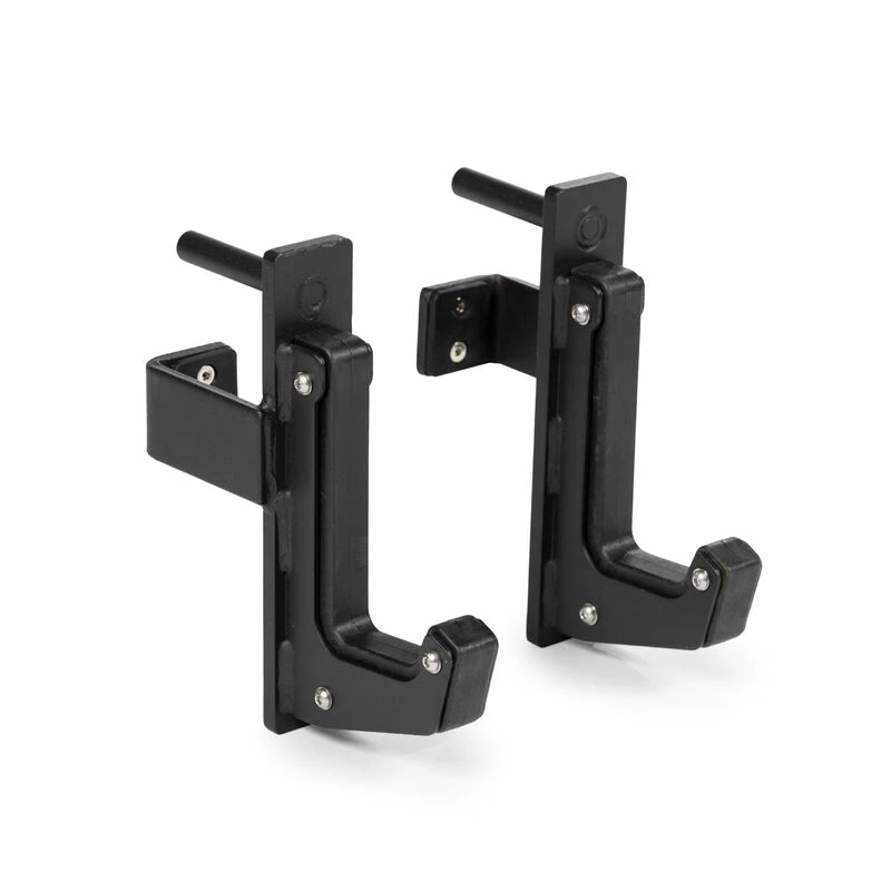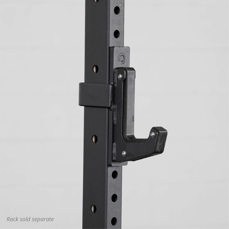 The T-3 Series Sandwich J-Hooks by Titan Fitness® are designed with a J-hook style mounting system that allows you to install the hooks to your rack within seconds. Easily clip the mounting system into the uprights by inserting the pin and rotating the hooks down. No hardware required. The two 1.375-inch-wide hooks can hold up to a combined 1,800-pounds and feature 1-inches of UHMW plastic core sandwiched between two thick steel plates with 0.375-inch of UMHW exposed to protect and preserve your bar’s finish and knurling. Elevate your workouts and general safety with the T-3 Series Sandwich J-Hooks!