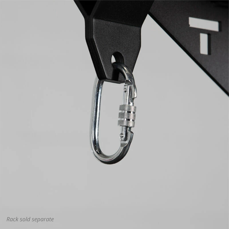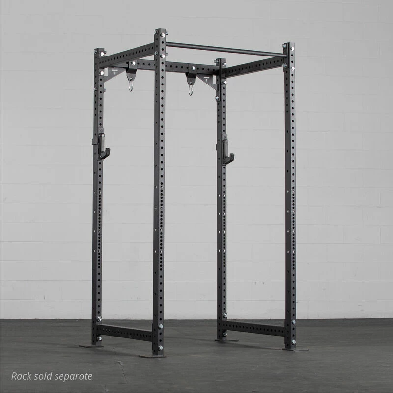These Shackles are the perfect way to add accessories to your T-3 Series Power Rack. Constructed from laser-cut, precision-bent steel that will hold a weight capacity of 500-pounds. This bolt-on set attaches to the upper 2 x 3-inch crossmember of your power rack with the included hardware. The shackles, paired with carabiners, allow you to hook into a variety of grip strength accessories including, rings, pull-up blocks, grip cylinders, spheres, and more. Additionally, you can mount the shackles to the front of your upright to add more variety to workouts or utilize them as a space saver to hang accessories.