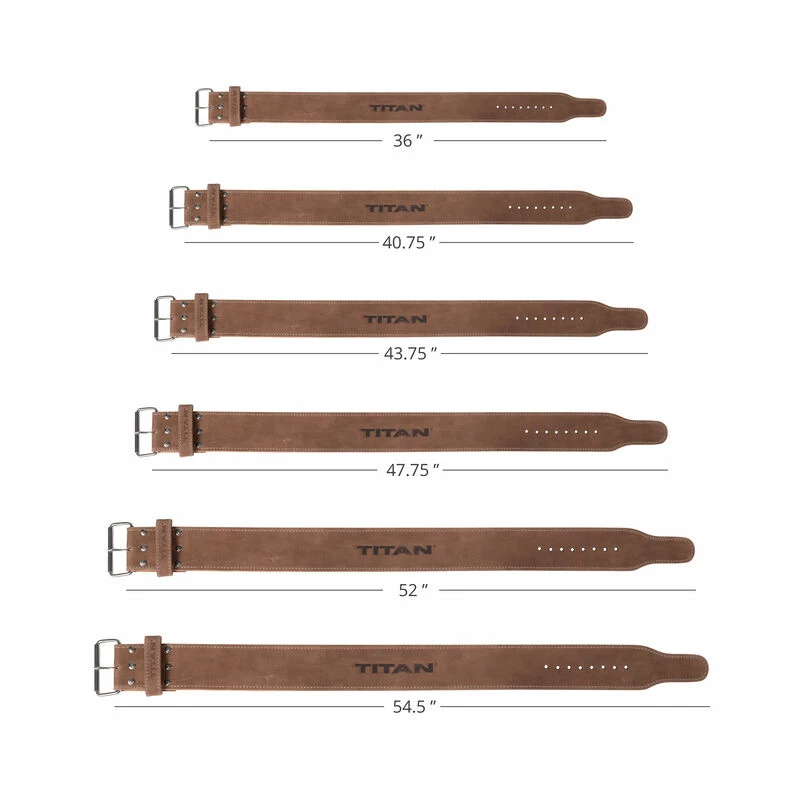 The MAXXUM Lifting Belts by Titan Fitness® are available in six sizes to support your lower back during squats and deadlifts. Made from 10 mm thick, vegetable-tanned leather, these 4-inch-wide belts provide firm support with a single prong design for quick adjustments. Featuring ten prong holes spaced 1-inch apart, these belts will sit comfortably and maintain stability through your heaviest lifts.