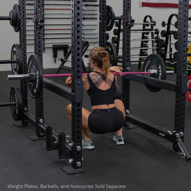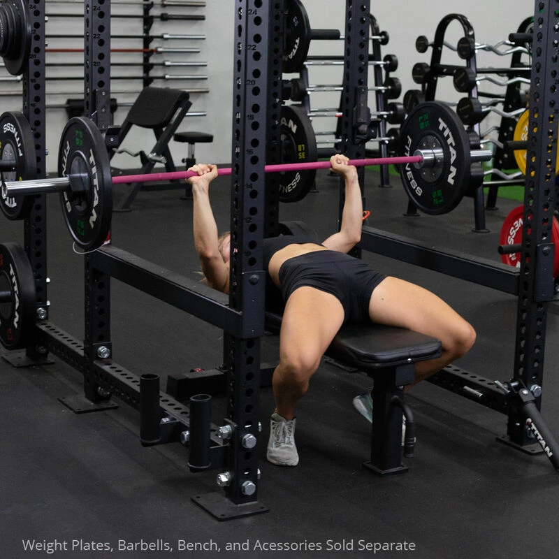 The TITAN Series Flip Down Safety Bars, constructed from heavy-duty 3 x 3-inch 11-gauge steel, incorporates a J-hook style mounting system that allows you to install the Bars to your Rack within seconds. Easily clip the mounting system into the uprights by inserting the pin and twisting the bars down. No hardware is required. The top of the Safety Catches features a protective durable plastic liner that spans the entire safety bar to protect both the barbell’s knurl and the Power Rack’s uprights. Crafted for athletes who train alone in-home gym settings or those who need extra peace of mind when pushing for a PR. The TITAN Series Flip-Down Safeties offer protection through any failed rep and serve as a supportive platform allowing a weight capacity of 3,000-pounds, providing assurance when adding weight, and helping assist as a pulling platform.