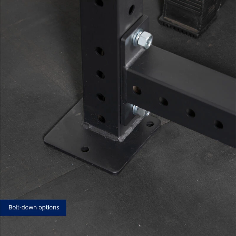The X-3 Series Bolt Down Power Rack, designed fully customizable, offers your choice in 80 and 90-inch models. These bolt-together racks feature 3 x 3-inch 11-gauge square steel uprights with Westside hole spacing through the bench and clean pull zone, 2-inch spacing above and below, 6-inch side hole spacing throughout the entire upright, and your choice in a custom powder-coated finish. Additionally, the power rack comes standard with a 1.25-inch pull-up bar, a 2-inch fat pull-up bar, and two reinforced J-Hooks. Take your workouts even further and add more variety by taking advantage of our Power Rack Accessories, such as Pin and Pipe Safeties, Spotter Arms, Roller J-Hooks, and more. Customizable, durable, and exceptionally functional, the X-3 Series Power Rack is the perfect centerpiece in building out your home or garage gym.
