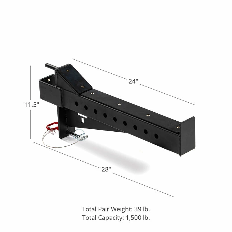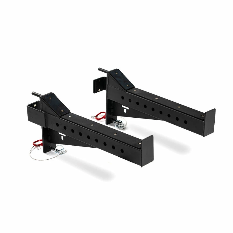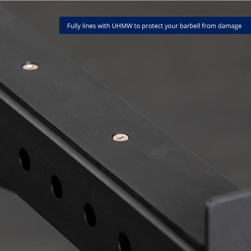 The X-3 Series Spotter Arms from Titan Fitness® are designed specifically for the X-3 Series Power Racks to provide extra security when lifting weights alone. Constructed from heavy-duty 11-gauge steel, these Spotter Arms will hold a weight capacity of up to 1,500-pounds. Featuring fully lined UHMW plastic liners and a durable powder-coated finish to protect your safety catches and barbell from damage. Additionally, the arms are easy to adjust up and down your X-3 Series rack with quick pin adaptors. These durable Spotter Arms are an absolute must-have for anyone who prefers to do hard training alone.